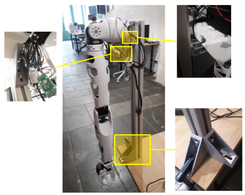 In replacement, we used a rollable TV support along with a custom 3D printed piece to attach the robot to it.